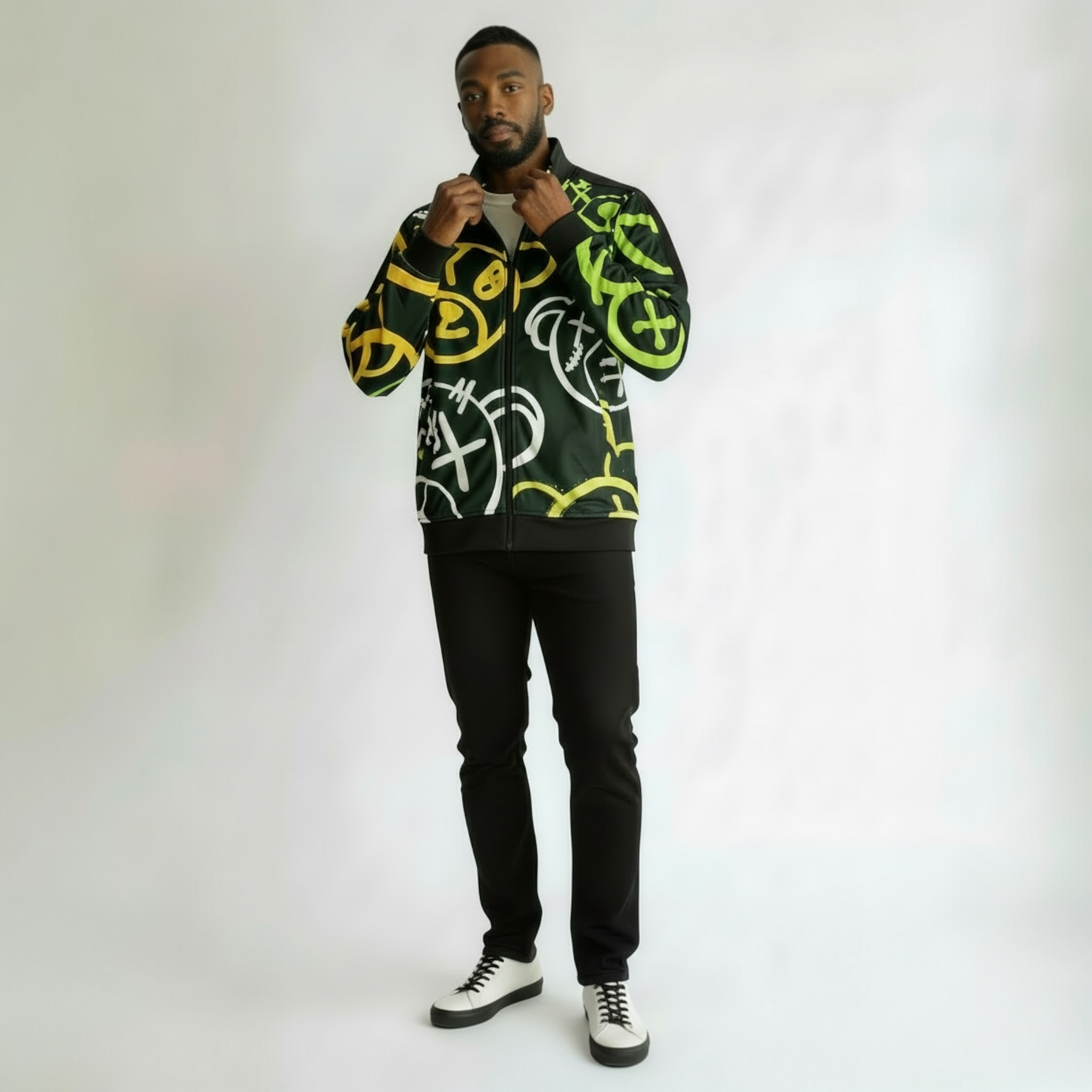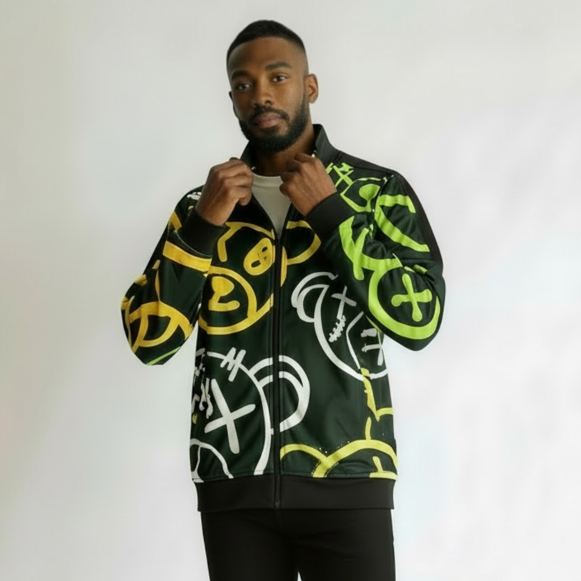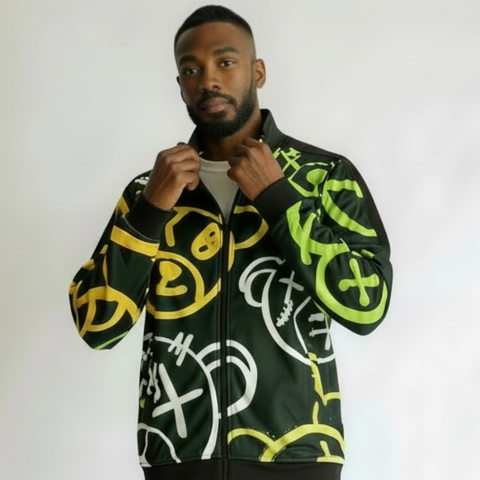 The Bear Focus Track Jacket combines streetwear style with functionality. It's fashionable design features a vibrant green and yellow color scheme, perfect for making a statement. Made to pair with jeans, this jacket is ideal for those who prioritize both fashion and comfort.