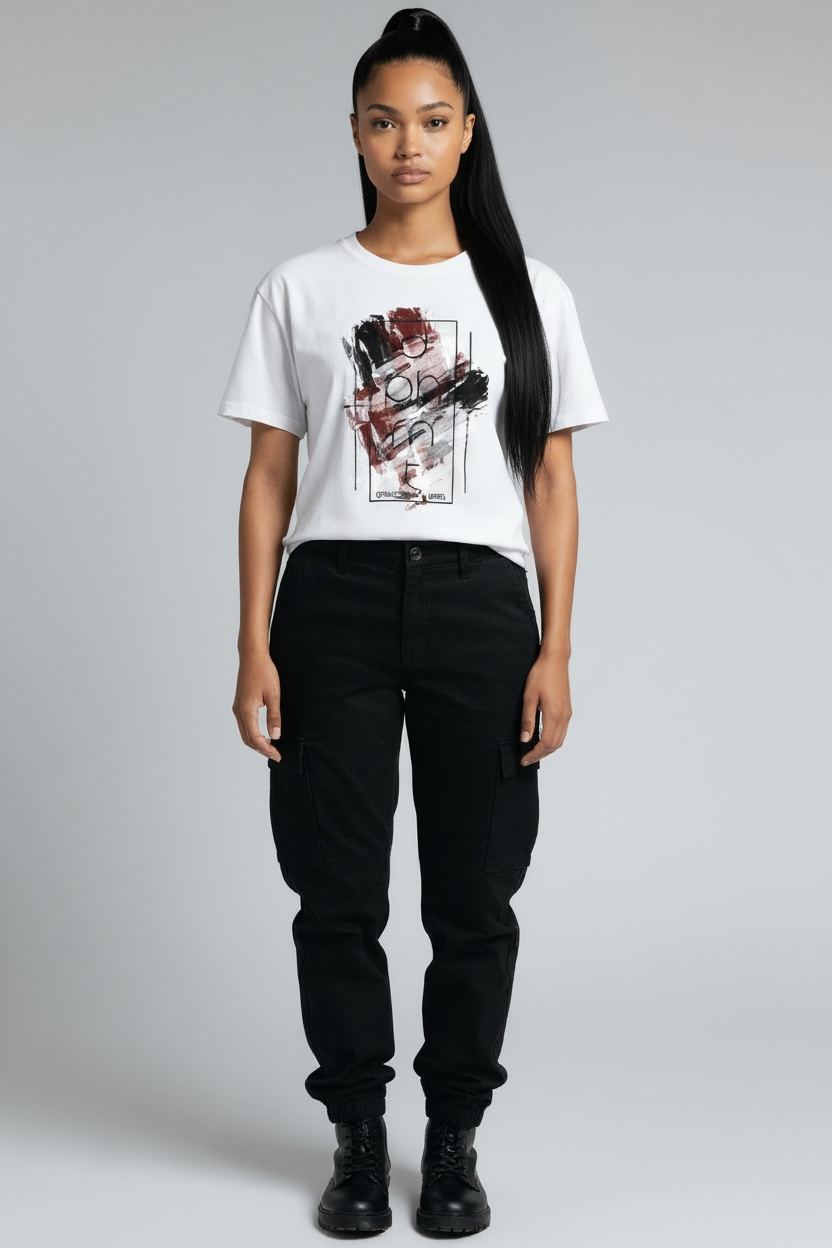 DPHRNT Brush Paint Graphic is a comfortable and stylish jersey cotton t-shirt featuring a vibrant red and black brush paint design. Its soft and smooth fabric provides maximum comfort and support, making it the perfect choice for any occasion. Unisex sizing.