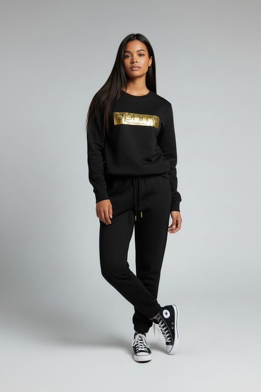 "DPHRNT" Gold Foil Pullover Jogger Set